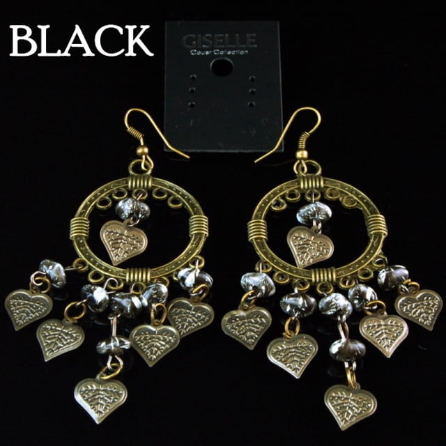 エスニック調♪ハートチャーム&カラービーズモチーフ♪アンティークライクフックピアス (NUY-7)