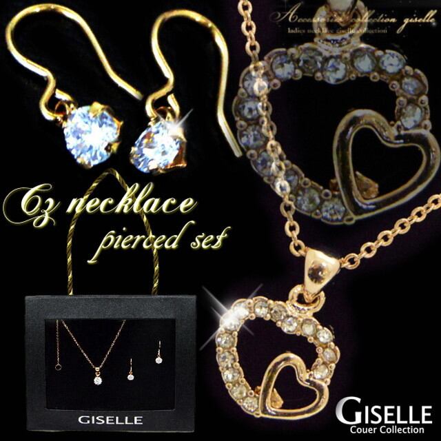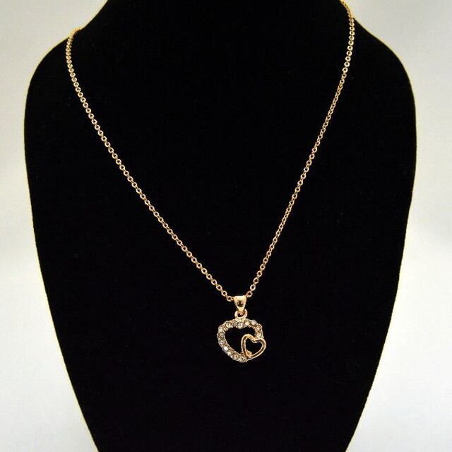 ジュエリー仕立て“ネックレス&ピアスセット”PinkGoldダブルハート★2段階調整式アジャスター★ (BH-NP19-PG)