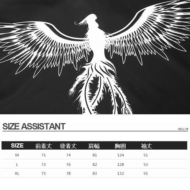 【HEYBIG】メンズ/レデース/ユニセック プリントスウェットパーカー アウター / Oversized Phoenix Wing Parka Black and White Stitching Hooded Sweater (DCT-575245670862)