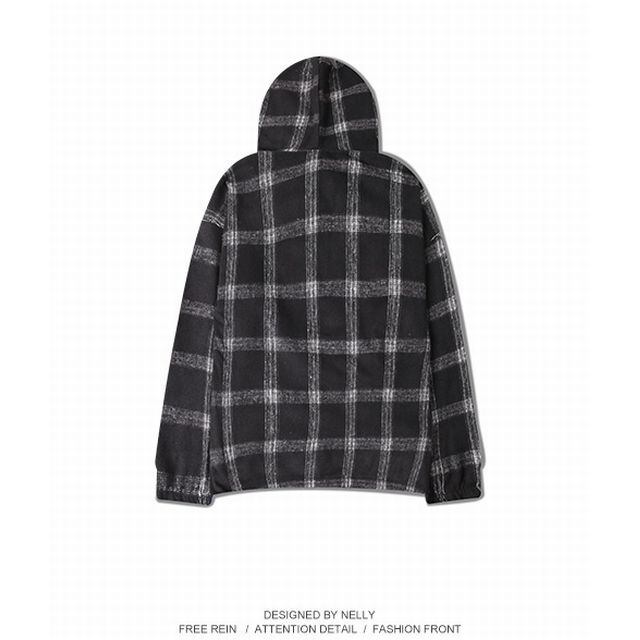 【HEYBIG】メンズ/レデース/ユニセック チェック柄 プルオバーパーカー ジャケット / Oversized check pattern pullover trend sweater with male hood (DCT-575814300409)