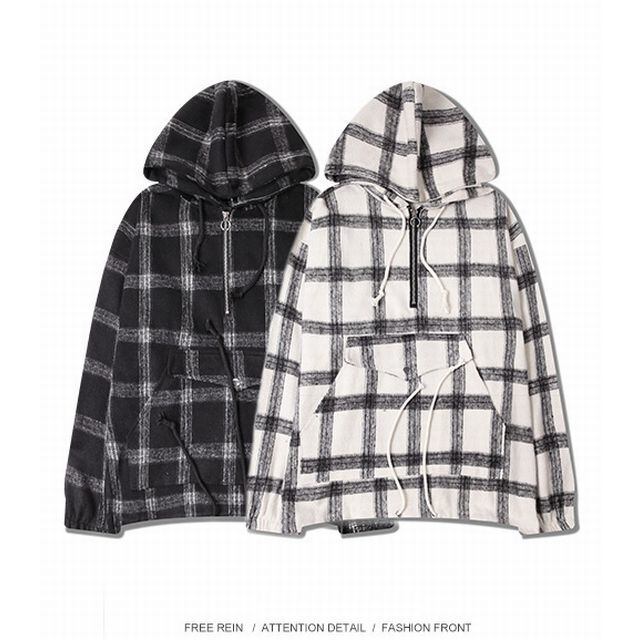 メンズ メンズファッション レディース レディースファッション UNISEX ユニセックス チェック柄 プルオーバー ジャケットプルオーバーパーカー 秋冬 カジュアル シンプル 韓国 韓流 韓流ファッション 韓国スタイル 韓国ファッション オルチャン 可愛い かわいい オシャレ ブラック ホワイト プチプラ プチプラファッション 安い 激安 人気