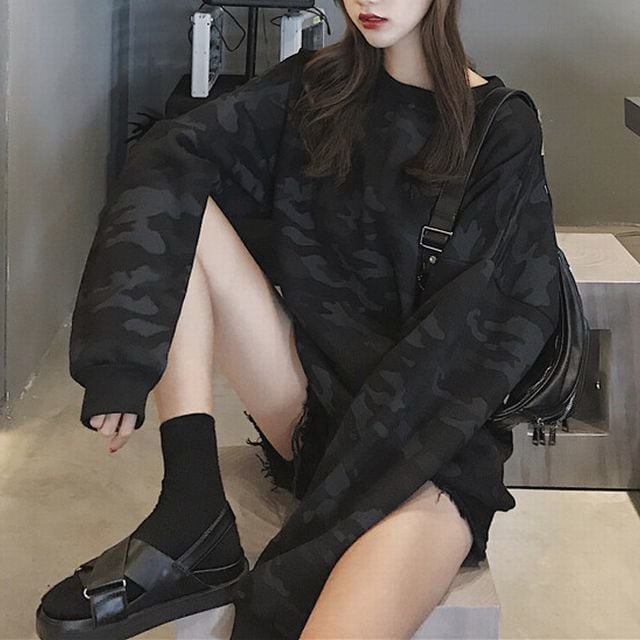 レディース レディースファッション トレーナー スウェット トップス 迷彩 ブラック カジュアル 春 秋 冬 OLスタイル 通勤 カジュアル シンプル 韓国 韓流 韓流ファッション 韓国スタイル 韓国ファッション オルチャン 可愛い かわいい オシャレ グレー プチプラ プチプラファッション 安い 激安 人気