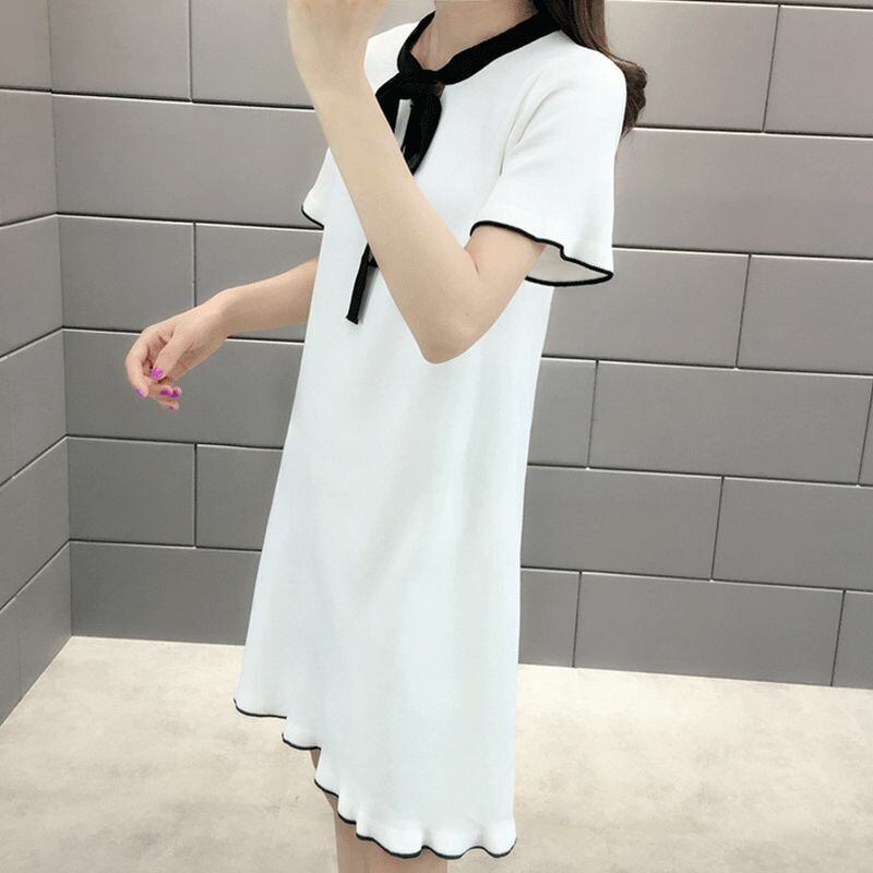 レディース ボウタイ ワンピース ミニワンピース シンプル 春コーデ / Women's Strap Long Short Sleeve Fashion Dress (DCT-591701186570)