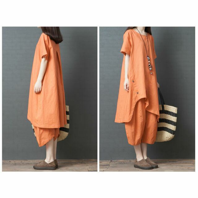 レディース シンプルセットアップ ゆったりシルエット ツーピース 両サイドポケット 半袖 (DCT-590388996263)