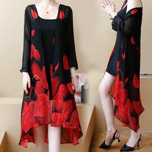 レディース リーフ柄薄手ロングカーディガン シースルー 7分袖 (DCT-591695697806)