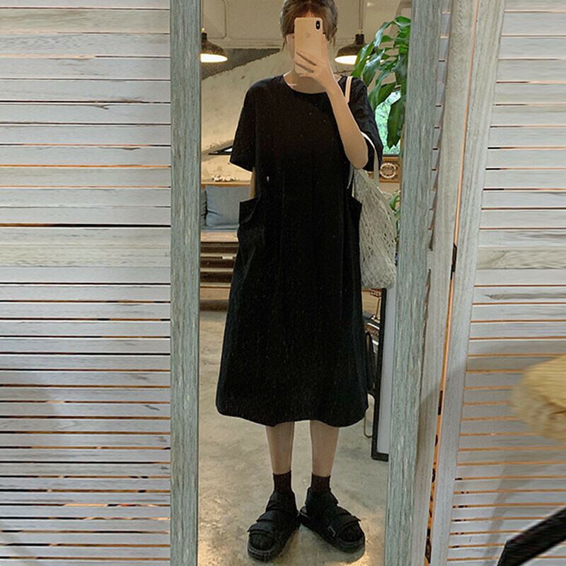 レディース ビックポケット ドット柄ワンピース ゆったり 着痩せ 大きいサイズ 韓国ファッション オルチャン / Large pocket polka dot dress (DCT-595971122255)