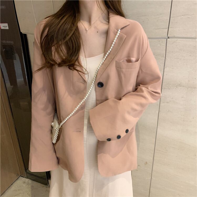 レディース ジャケット くすみピンク ブレザー テーラード ボタン シンプル アウター 体型カバー 大人カジュアル 韓国 韓国ファッション / Pink loose casual suit jacket (DTC-588798568580)