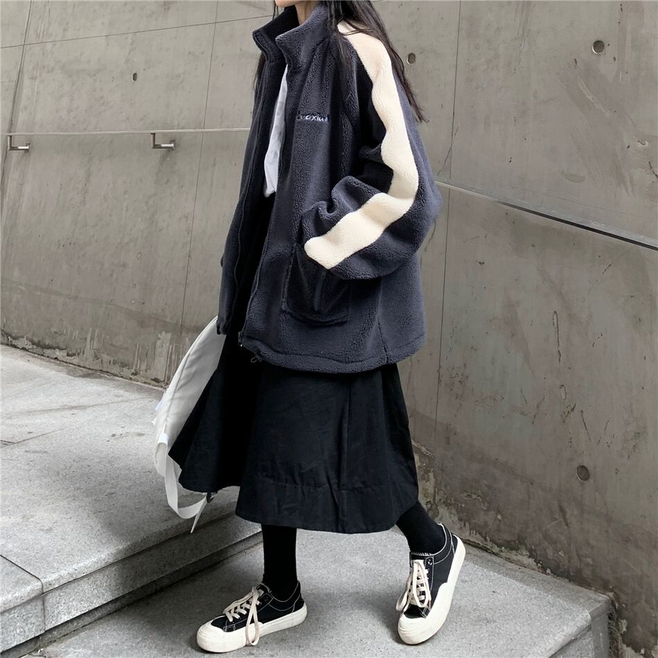 ボアブルゾン アウター 韓国ファッション レディース フリース もこもこ あったか フロントジッパー ファスナー 長袖 ゆったり シンプル レトロ ガーリー / Imitation lamb fur loose jacket DTC-604853811164