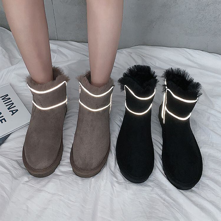 ムートンブーツ ショートブーツ 韓国ファッション レディース 反射帯 もこもこ カジュアル かわいい ブーツ 歩きやすい / Reflective snow warm plus velvet boots (DTC-606180197512)