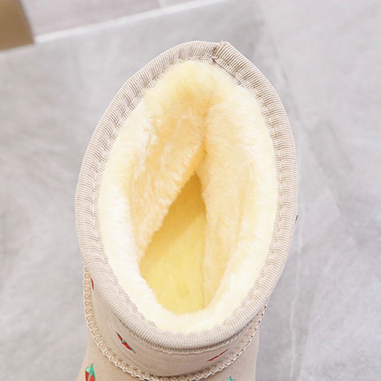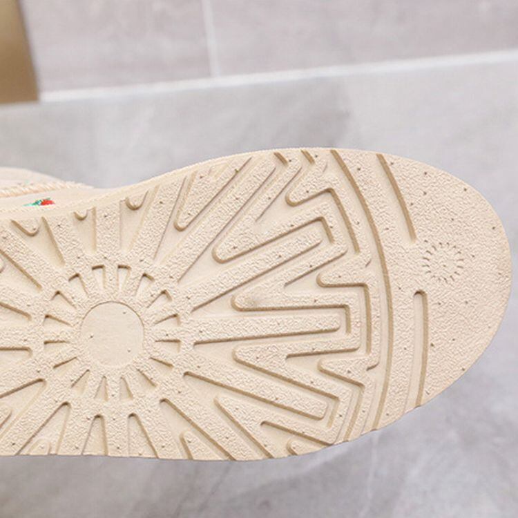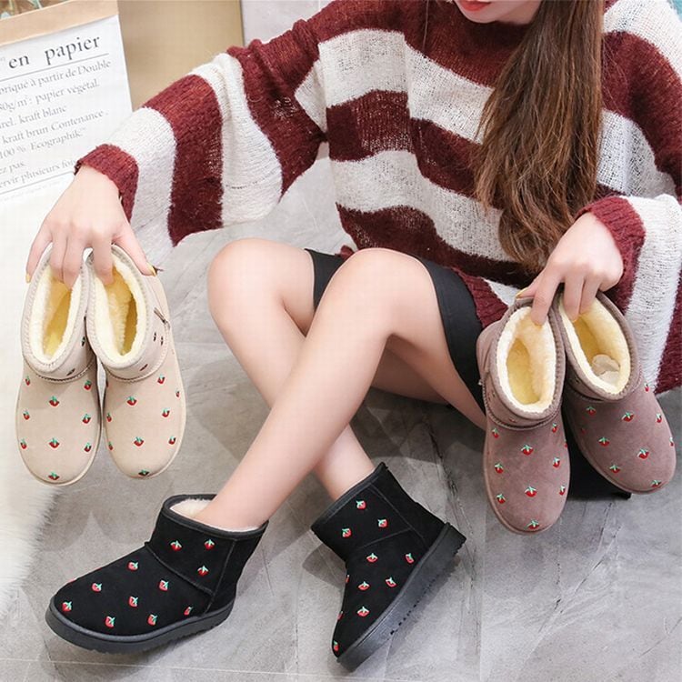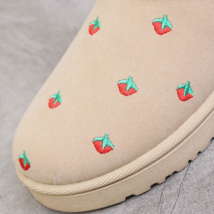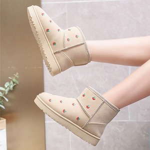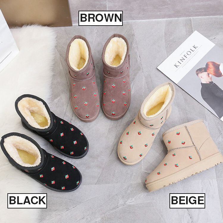 イチゴ模様 ムートンブーツ ショート丈 韓国ファッション レディース ファーブーツ 防水 防寒 もこもこ フラットソール 歩きやすい 履きやすい / Flat bottom plus velvet waterproof non-slip boots (DTC-606310721317)