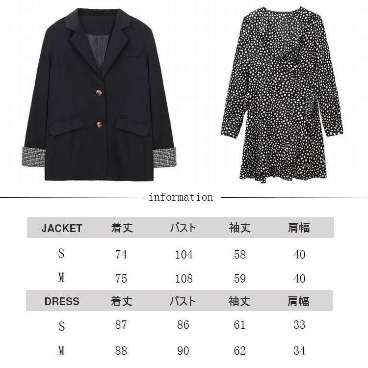 セットアップ テーラードジャケット + ワンピース 韓国ファッション レディース セット シングルボタン 袖折り返し 長袖 花びら柄 フリル ハイウエスト レトロ / Two-piece cufflink suit jacket and floral dress (DTC-634256983303)