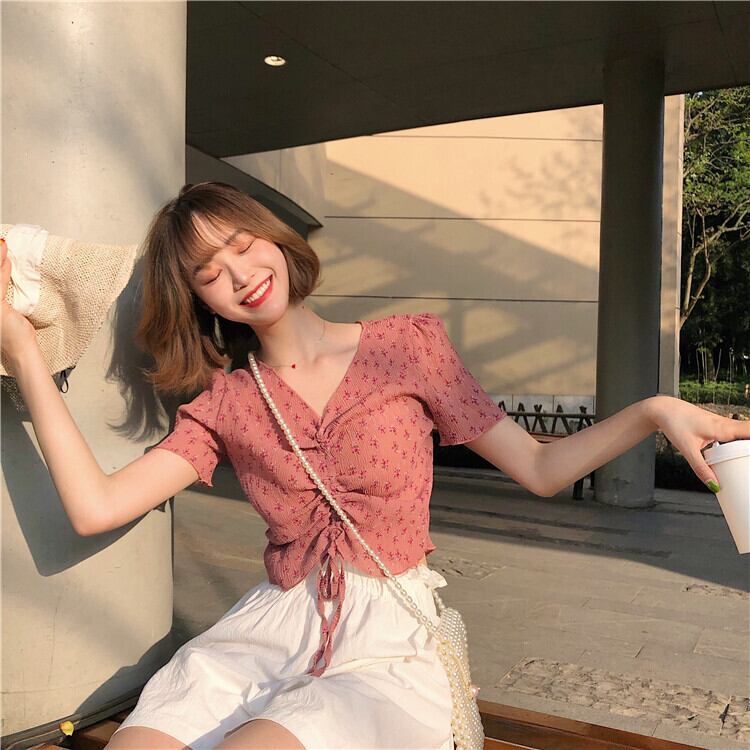 レディース レディースファッション ブラウス 花柄 ショート丈 Vネック 半袖 薄手 ウエストマーク 大人可愛い ガーリー フェミニン きれいめ おしゃれ 通販 韓国 韓国通販 韓国ショッピング 韓国ファッション おるちゃん オルチャン オルチャンファッション 10代 20代 30代 40代 可愛い かわいい お洒落 レディス プチプラ 激安 安い コーデ コーディネイト 人気 おすすめ