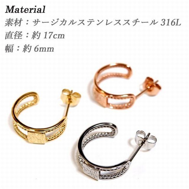 ステンレスピアス/スクロールフープピアス/イエローゴールド/ピンクゴールド/シルバー