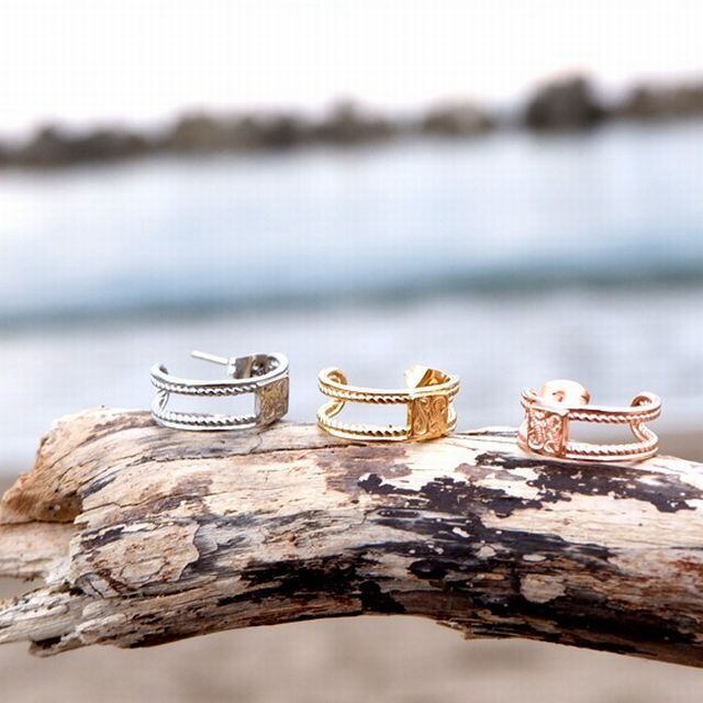 ハワイアンジュエリー ピアス メンズ レディース ペア 片耳 スクロール カレイキニ ミル打ち サージカルステンレス ステンレス PVD ノンアレルギー 金属アレルギー対応 プレゼント 記念日 誕生日 贈り物 スチールシルバー イエローゴールド ピンクゴールド アクセサリー ジュエリー
