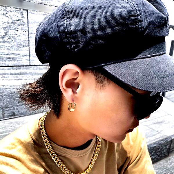 ハワイアンジュエリー ピアス 片耳用 メンズ レディース ペア スクロール カレイキニ ミル打ち サージカル ステンレス 金属アレルギー対応 スチールシルバー イエローゴールド ピンクゴールド インスタ (ges8228)
