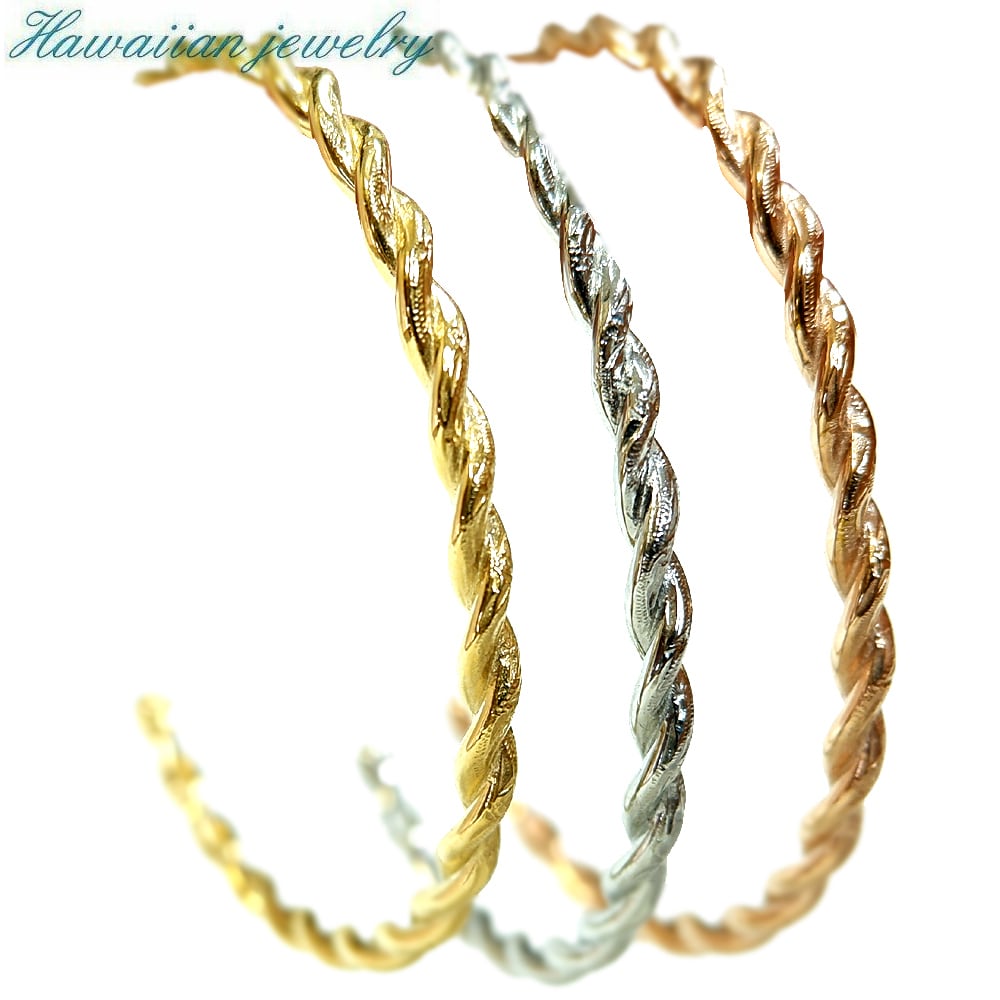 ハワイアンジュエリー バングル メンズ レディース ペア バンブー スクロール 金属アレルギー対応 サージカル ステンレス スチールシルバー イエローゴールド ピンクゴールド インスタ (gbg8139)