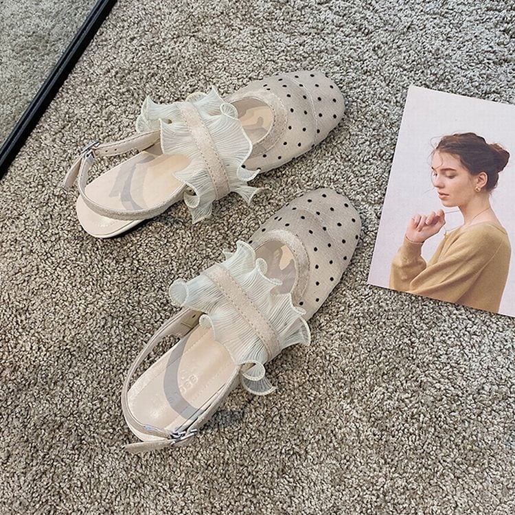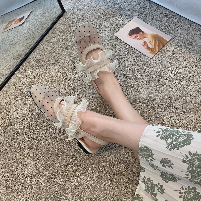 シースルーメッシュ素材が新鮮なドット柄フラットサンダル