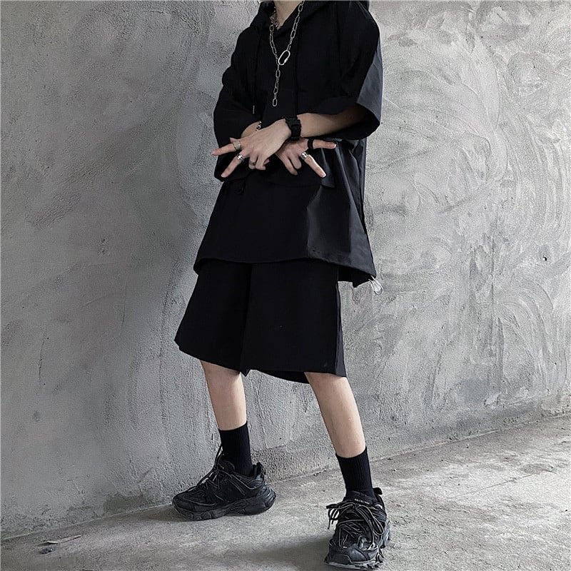 セットアップ フード付きトップス + ハーフパンツ 半袖 韓国ファッション レディース 2点セット パーカー トップス ショートパンツ かわいい / Touring Hooded Tops Loose BF Casual Jacket (DTC-622418727034)
