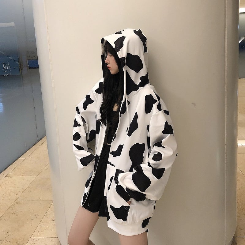 レディース レディースファッション パーカー 牛柄 ジップアップ ジッパー 長袖 オーバーサイズ ルーズ ゆったり 大きめ ルーズ カジュアル ストリート ファッション 原宿 韓国 韓国通販 韓国ショッピング 韓国ファッション おるちゃん オルチャン オルチャンファッション 10代 20代 30代 40代 可愛い かわいい オシャレ プチプラ プチプラファッション 安い 激安 人気