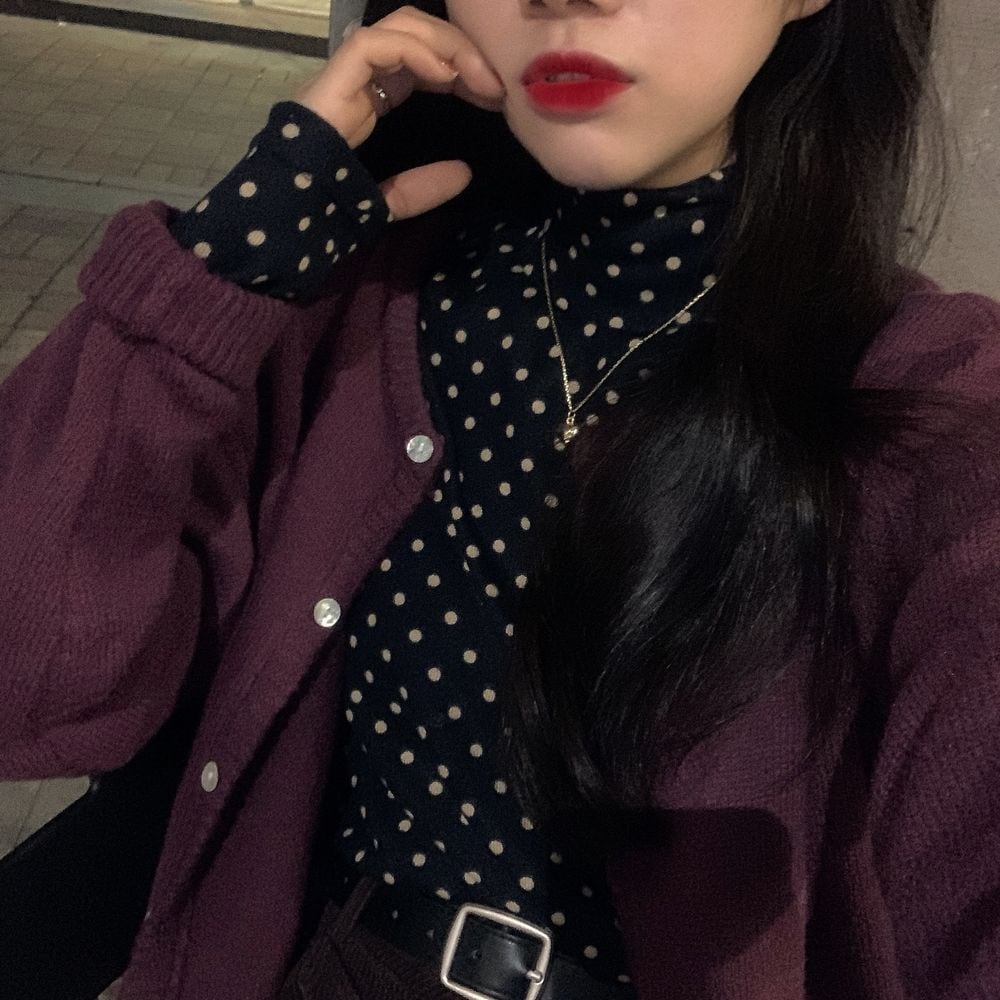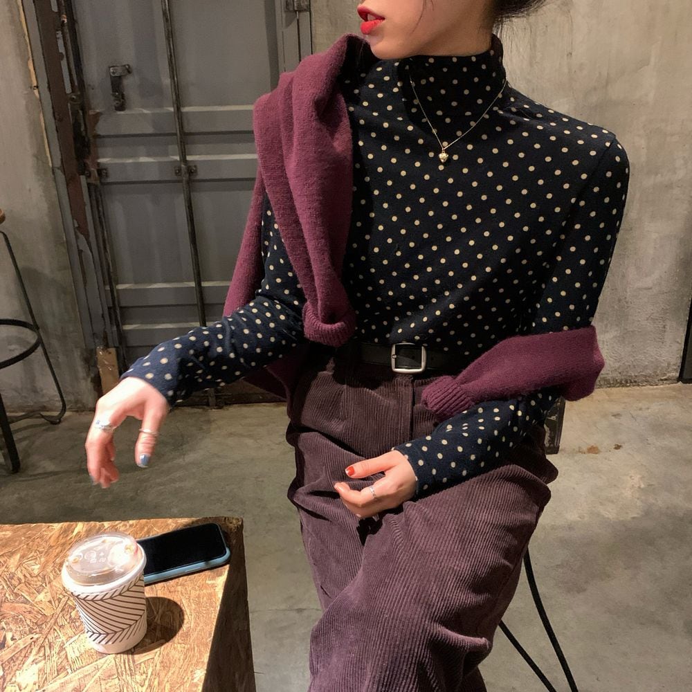 レディース レディースファッション ドット柄 スリムフィット カットソー Tシャツ 長袖 ハーフネック 伸縮性 ロングTシャツ 無地 シンプル レトロ 大人可愛い ガーリー フェミニン カジュアル きれいめ おしゃれ 通販 韓国 韓国通販 韓国ショッピング 韓国ファッション おるちゃん オルチャン オルチャンファッション 10代 20代 30代 40代 可愛い かわいい お洒落 レディス プチプラ 激安 安い コーデ コーディネイト 人気 おすすめ