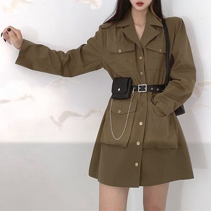 レディース レディースファッション ワンピース シャツワンピース ジャケット風 トレンチ風ミニ丈 ベルト付き ミニバック付き ポケットチェーン ハイウエスト 長袖 大人可愛い ガーリー フェミニン カジュアル きれいめ おしゃれ 通販 韓国 韓国通販 韓国ショッピング 韓国ファッション おるちゃん オルチャン オルチャンファッション 10代 20代 30代 40代 可愛い かわいい お洒落 レディス プチプラ 激安 安い コーデ コーディネイト 人気 おすすめ