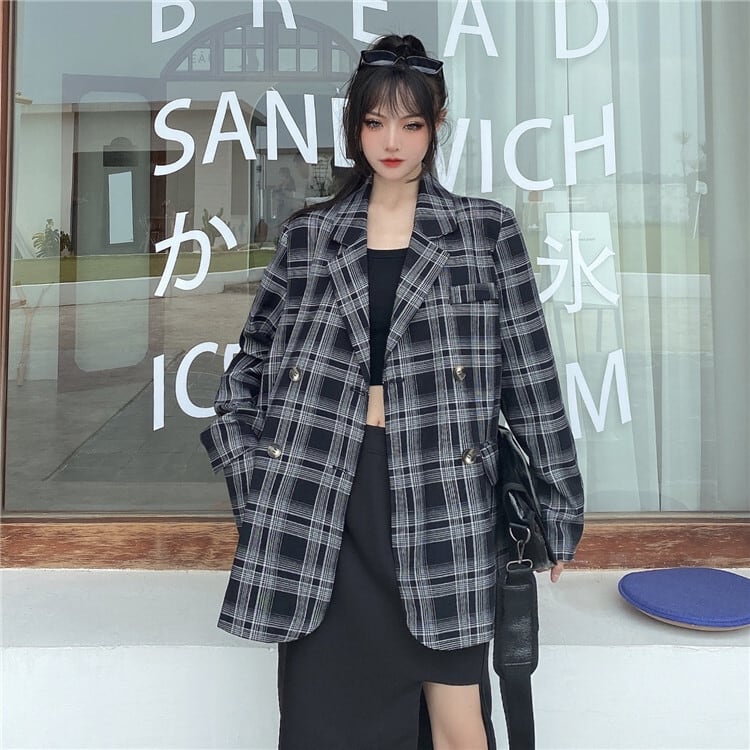 レディース レディースファッション テーラードジャケット チェック柄 ルーズ 長袖 大人可愛い ガーリー フェミニン カジュアル きれいめ おしゃれ 通販 韓国 韓国通販 韓国ショッピング 韓国ファッション おるちゃん オルチャン オルチャンファッション 10代 20代 30代 40代 可愛い かわいい お洒落 レディス プチプラ 激安 安い コーデ コーディネイト 人気 おすすめ