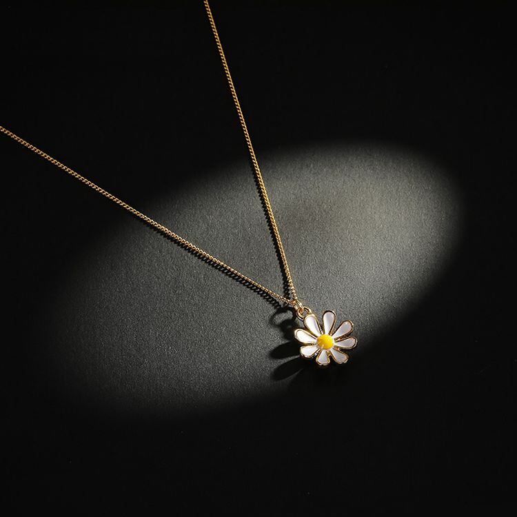 デイジー ネックレス 花 フラワー チェーン付き ゴールド 韓国アクセサリー ペンダント 合金 シンプル 人気 アクセサリー / Small daisy necklace clavicle chain (DTC-616331272810)