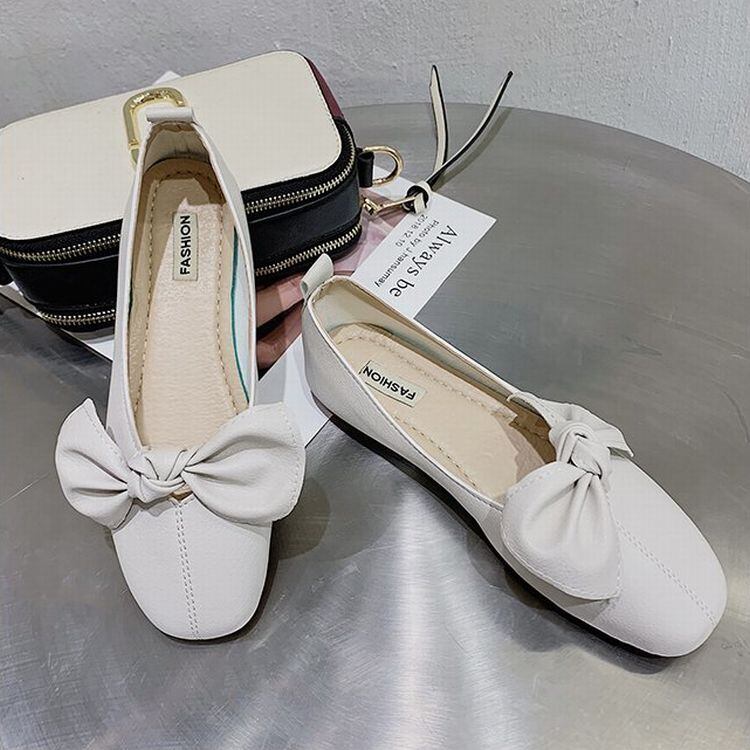 大きいリボン フラットパンプス スクエアトゥ 韓国ファッション レディース ぺたんこ パンプス フラットシューズ キュート 痛くない かわいい 歩きやすい (DTC-623975545711)