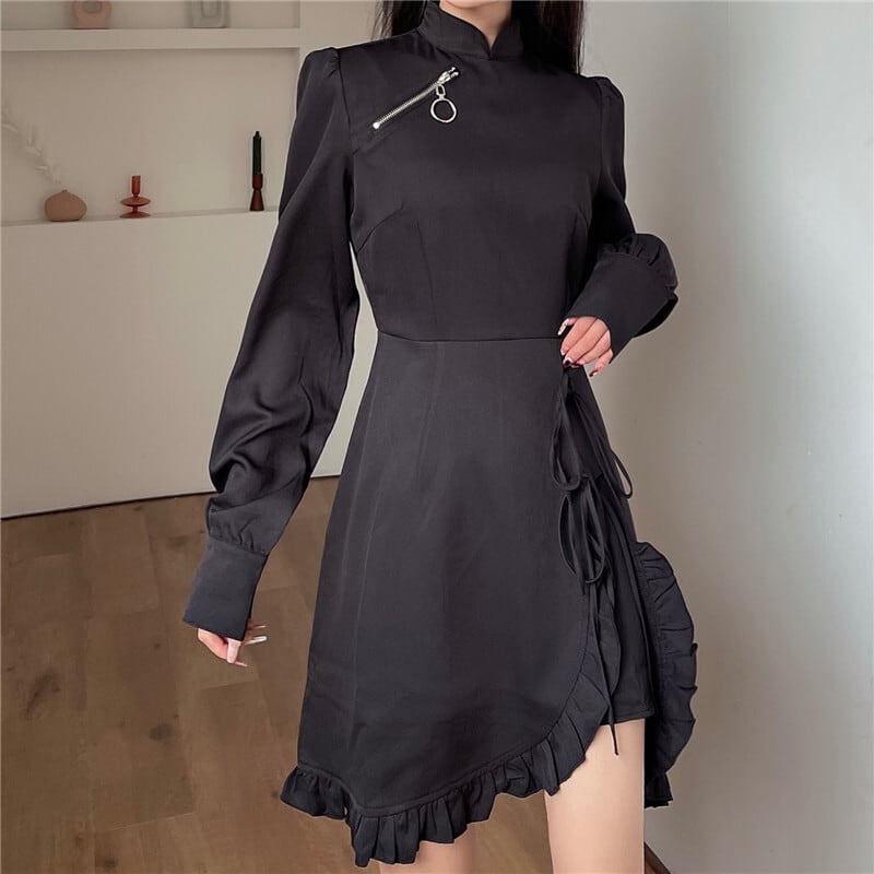 レディース レディースファッション ワンピース 不規則デザイン ジッパー ジッパー アシンメトリー アシメ ハイウエスト 無地 暗黒系 ダーク ガーリー フェミニン カジュアル きれいめ おしゃれ 通販 韓国 韓国通販 韓国ショッピング 韓国ファッション おるちゃん オルチャン オルチャンファッション 10代 20代 30代 40代 可愛い かわいい お洒落 レディス プチプラ 激安 安い コーデ コーディネイト 人気 おすすめ
