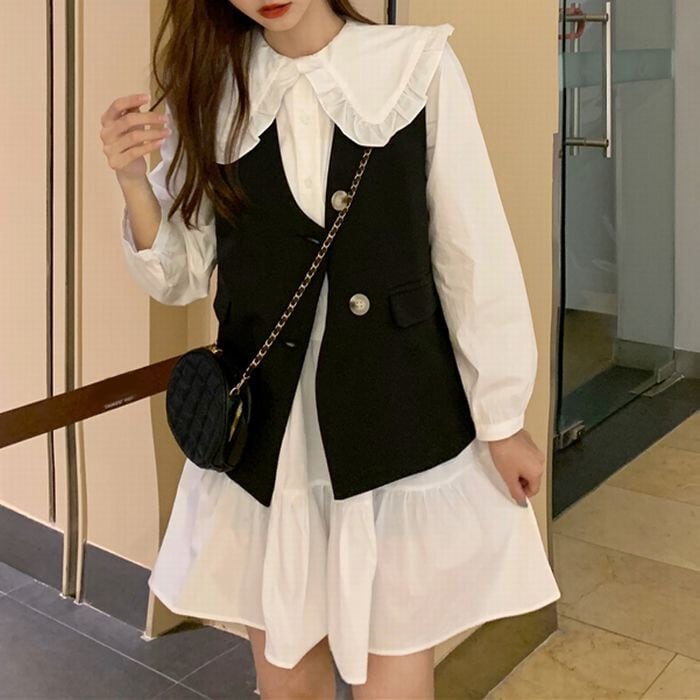 レディース レディースファッション セットアップ 2点セット ワンピース ベスト ルーズ Aラインスカート 長袖 大人可愛い ガーリー フェミニン きれいめ おしゃれ 通販 韓国 韓国通販 韓国ショッピング 韓国ファッション おるちゃん オルチャン オルチャンファッション 10代 20代 30代 40代 可愛い かわいい お洒落 レディス プチプラ 激安 安い コーデ コーディネイト 人気 おすすめ