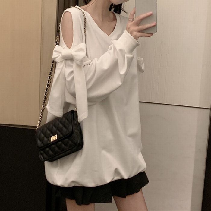 レディース レディースファッション トレーナー 薄手 長袖 ゆったり カットソー Vネック オフショルダー トップス 肩あき 肩出し リボン ボリューム袖 プルオーバー 大人可愛い ガーリー フェミニン きれいめ おしゃれ 通販 韓国 韓国通販 韓国ショッピング 韓国ファッション おるちゃん オルチャン オルチャンファッション 10代 20代 30代 40代 可愛い かわいい お洒落 レディス プチプラ 激安 安い コーデ コーディネイト 人気 おすすめ 628788095123 625702560241 625501955441 624456278601 624713087361 637974244713