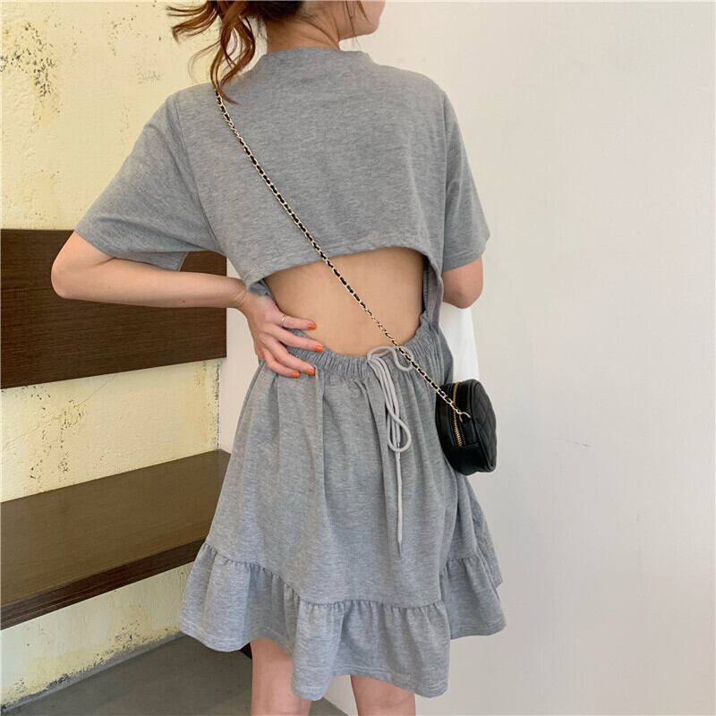 レディース レディースファッション ワンピース オープンバック 背中あき 薄手 Tシャツ フリルスカート 半袖 ハイウエスト 大人可愛い ガーリー フェミニン きれいめ おしゃれ 通販 韓国 韓国通販 韓国ショッピング 韓国ファッション おるちゃん オルチャン オルチャンファッション 10代 20代 30代 40代 可愛い かわいい お洒落 レディス プチプラ 激安 安い コーデ コーディネイト 人気 おすすめ