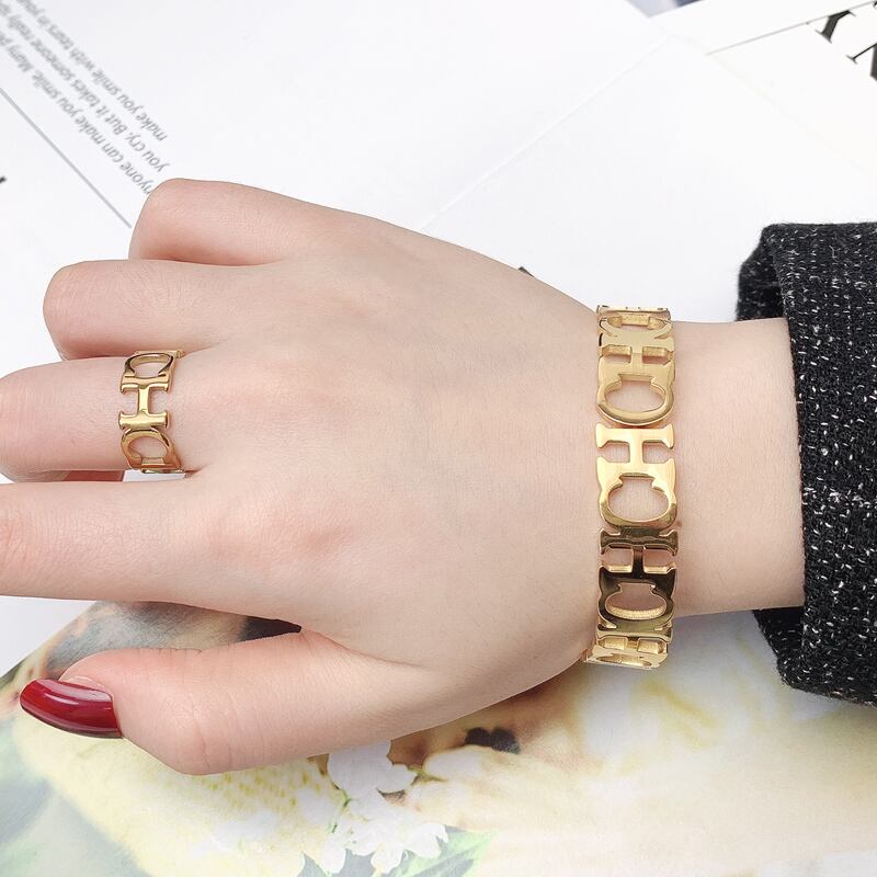 バングル レディース 金属アレルギー対応 ローマ字切り抜き アルファベット シルバー イエローゴールド ローズゴールド ピンクゴールド チタンスチール アクセサリー / English alphabet bracelet titanium steel (DTC-601886239304)