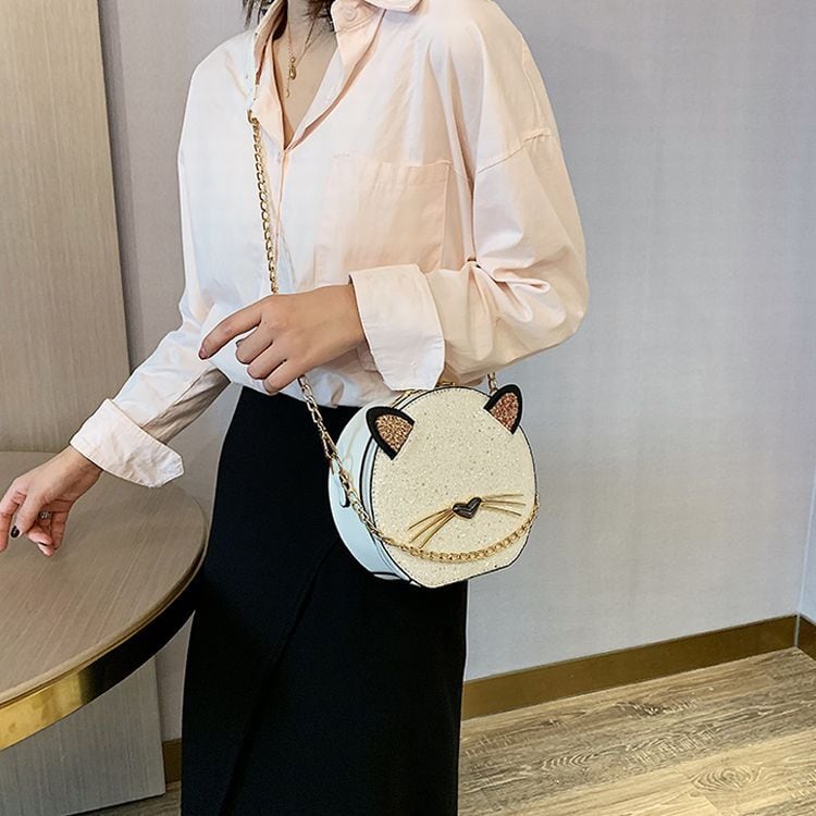 猫モチーフ スパンコール ショルダーバッグ ミニバッグ サークルバッグ チェーンストラップ アニマルバッグ 丸い 斜めがけ シンプル 肩掛け レトロ 通販 韓国 韓国通販 韓国ショッピング 韓国ファッション おるちゃん オルチャン オルチャンファッション 10代 20代 30代 40代 可愛い かわいい オシャレ プチプラ プチプラファッション 安い 激安 人気
