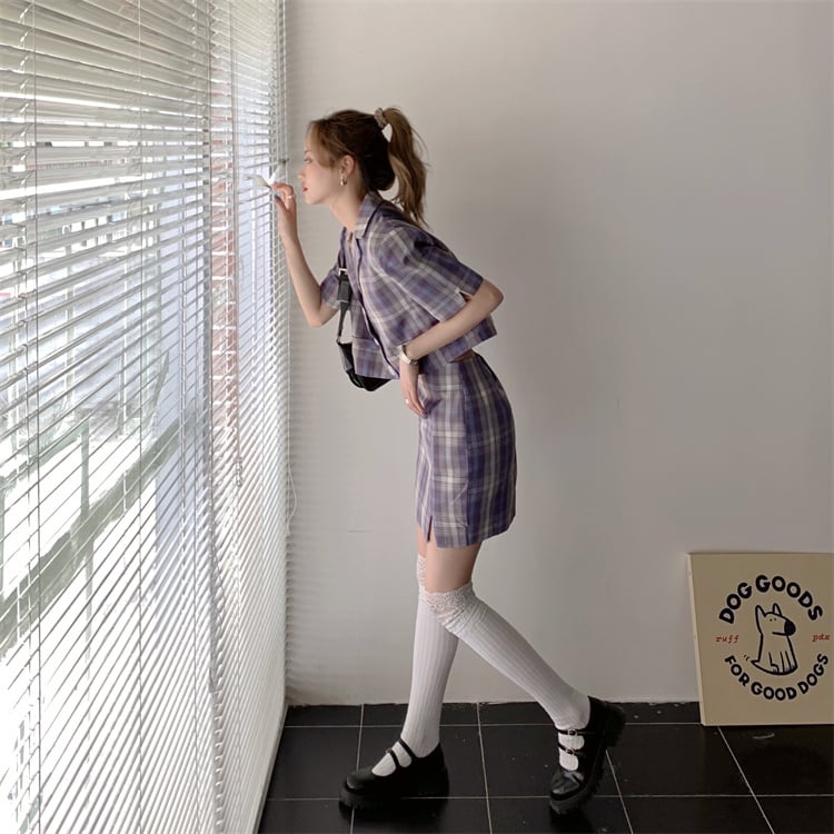レディース レディースファッション セットアップ チェック柄 ジャケット クロップド丈 半袖 スカート ハイウエスト 大人可愛い ガーリー フェミニン きれいめ おしゃれ 通販 韓国 韓国通販 韓国ショッピング 韓国ファッション おるちゃん オルチャン オルチャンファッション 10代 20代 30代 40代 可愛い かわいい お洒落 レディス プチプラ 激安 安い コーデ コーディネイト 人気 おすすめ