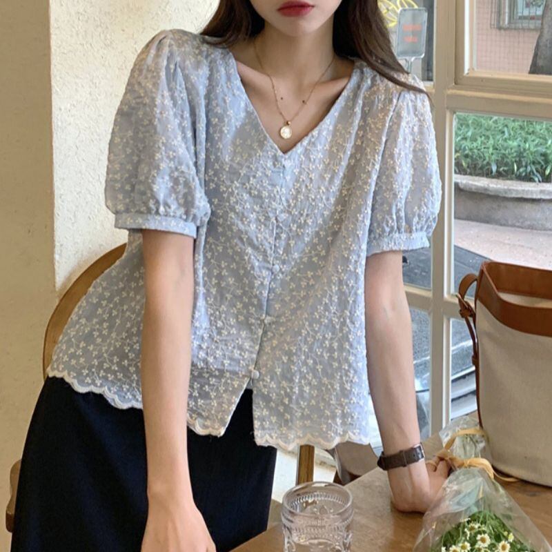 レディース レディースファッション ブラウス 花柄 Vネック パフ袖 半袖 薄手 クロップド丈 ショート丈 大人可愛い ガーリー フェミニン きれいめ おしゃれ 通販 韓国 韓国通販 韓国ショッピング 韓国ファッション おるちゃん オルチャン オルチャンファッション 10代 20代 30代 40代 可愛い かわいい お洒落 レディス プチプラ 激安 安い コーデ コーディネイト 人気 おすすめ 648865164794 649568238392 648799388236