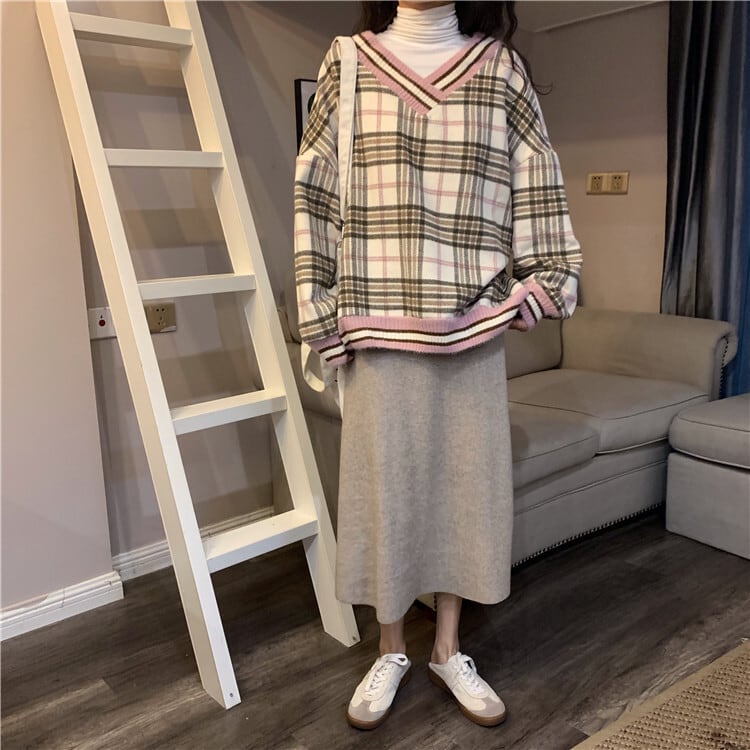 レディース レディースファッション ニット セーター Vネック チェック柄 ライン トップス ニット オーバーサイズ ルーズ シンプル 体型カバー レトロ 大人可愛い ガーリー 通勤 通学 シンプル フェミニン キレイめ きれいめ おしゃれ 秋 冬 秋コーデ 冬コーデ 韓国 韓国通販 韓国ショッピング 韓国ファッション おるちゃん オルチャン オルチャンファッション 10代 20代 30代 40代 可愛い かわいい お洒落 レディス プチプラ 激安 安い コーデ コーディネイト 人気 おすすめ 638181545440 651022501419