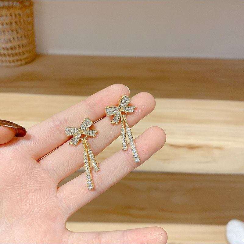 ピアス 両耳用 リボン ドロップピアス CZ アクセサリー 合金 シルバー925 ジュエリー / s925 full diamond bow earrings high end earrings (DTC-636637950656)