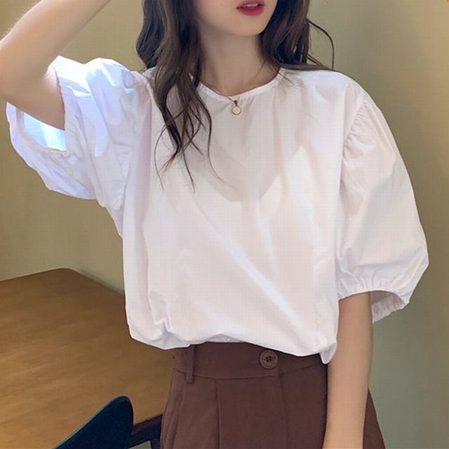 レディース レディースファッション ブラウス Tシャツ トップス パフスリーブ クルーネック ルーズ シンプル 半袖 レトロ 大人可愛い ガーリー カジュアル きれいめ おしゃれ 通販 韓国 韓国通販 韓国ショッピング 韓国ファッション おるちゃん オルチャン オルチャンファッション 10代 20代 30代 40代 可愛い かわいい お洒落 レディス プチプラ 激安 安い コーデ コーディネイト 人気 おすすめ 665443527759 641288381731