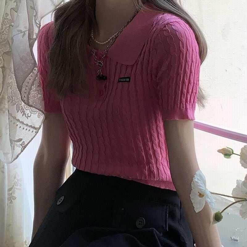 レディース レディースファッション サマーニット ポロカラー Tシャツ ケーブル編み ショート丈 ポロシャツ 襟つき トップス 半袖 レトロ 大人可愛い ガーリー カジュアル きれいめ おしゃれ 通販 韓国 韓国通販 韓国ショッピング 韓国ファッション おるちゃん オルチャン オルチャンファッション 10代 20代 30代 40代 可愛い かわいい お洒落 レディス プチプラ 激安 安い コーデ コーディネイト 人気 おすすめ 647055673662 647046045457 647406278620 646893700829 666300166429 667344779463 651504867146 648848626282 649507328341 650171080534